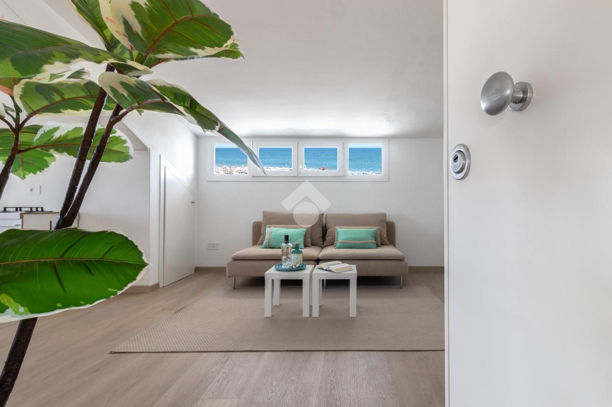 Riccione, Immagina di svegliarti ogni mattina con il suono delle onde e una vista mozzafiato che si estende all'infinito sul Mar Adriatico. Non è un sogno, è il tuo futuro in questo magnifico attico completamente ristrutturato, situato praticamente sulla spiaggia di Riccione!